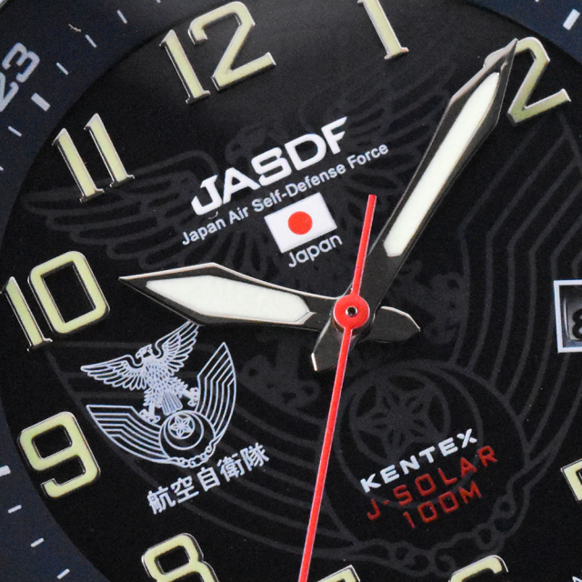 2004年(平成16年)より始まったケンテックスJSDF(自衛隊)時計開発プロジェクトは、自衛隊員向けの性能やコストパフォーマンスが大きな支持を受け、陸、海、空各幕僚監部協力のもと継続的に製品開発が行われてきました。現在では「防衛省共済組合登録商品」として、日本全国約270か所の自衛隊駐屯地ほか各基地で自衛隊員向けにも取り扱われています。 本製品は、ソーラー発電式ムーブメントを搭載し、フル充電で最大6ヵ月稼働します。突然のバッテリー切れで困ることがないよう、充電残量が残りわずかになると、秒針が2秒刻みとなる「バッテリー残量警告機能」も備えています。各モデルの文字盤には、陸・海・空各自衛隊の幕僚監部監修による公式エンブレム(徽章)がデザインされ、自衛隊時計に相応しい誇り高きデザインとなっています。