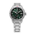 落ち着きと気品を漂わせる深いグリーン。サンレイ仕上げが放つ光沢がクラシックな色調に現代的な輝きを添え、日常の装いに重厚さと洗練さを与えます。針はストレートな時分針とアロー型のGM針が見事に調和し、シンプルで高い視認性と洗練されたデザインを両立しています
