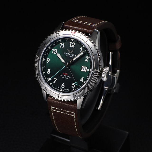 パイロットウォッチ「SKYMAN」シリーズに、新たなGMTモデルが登場。 Φ41.0mmのケースに、最大3つのタイムゾーンを同時表示できる両方向回転式GMTベゼルを搭載。視認性に優れたオールアラビアインデックスや、グローブ越しでも確実に操作できるビッグクラウンなど、パイロットウォッチの血統を受け継ぐ機能美を随所に備えています。 風防には無反射コーティングを施したサファイアクリスタルを採用。日本製ムーブメントは自社で0~+25秒まで精密に調整し、確かな精度を実現しています。