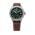 落ち着きと気品を漂わせる深いグリーン。サンレイ仕上げが放つ光沢がクラシックな色調に現代的な輝きを添え、日常の装いに重厚さと洗練さを与えます。針はストレートな時分針とアロー型のGM針が見事に調和し、シンプルで高い視認性と洗練されたデザインを両立しています
