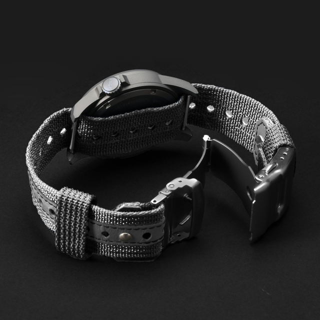 - Ballistic nylon / Black (fits wrist circumference approx. 13cm–21cm), Leather reinforced holes, Three-fold clasp