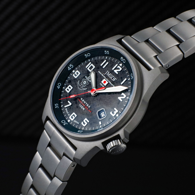 A new-generation military watch that combines lightweight, highly corrosion-resistant titanium with a solar-powered movement that eliminates the need for regular battery replacement. Incorporating feedback from active-duty personnel, the watch features a practical 39.0mm case and a crown positioned at 4 o’clock to avoid interfering with wrist movement during missions. The dial proudly displays the official emblems of the Japan Ground, Maritime, and Air Self-Defense Forces, and the model is officially registered with the Ministry of Defense Mutual Aid Association. Two strap options are available: a titanium bracelet and a nylon strap designed to enhance field mobility.